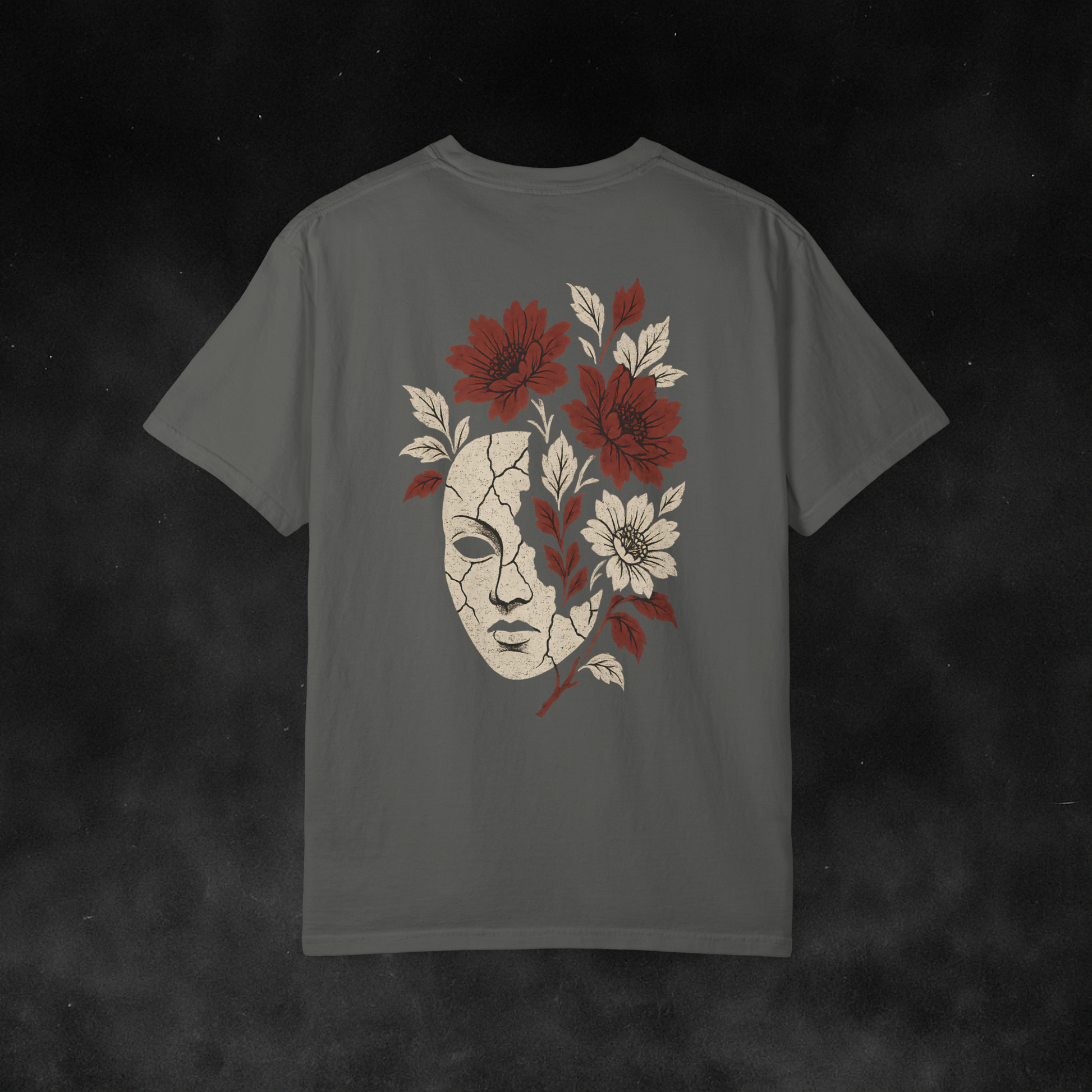 Dark beauty, cracked and blooming. The Bloom of the Masquerade Tee fuses gothic elegance with surreal horror — a fractured mask overtaken by crimson flowers. Printed on the Comfort Colors 1717 heavyweight tee for a soft, vintage feel that only gets better with time. Designed for gamers and alt-fashion lovers who want something truly unique.